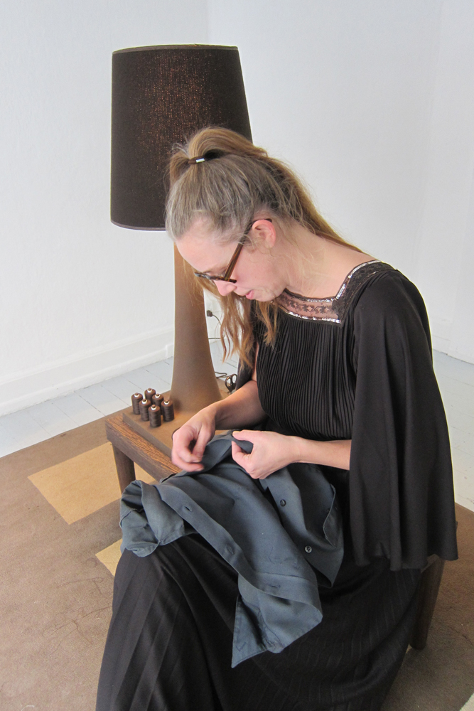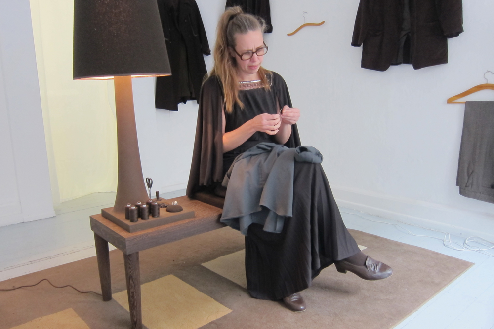 For half a day, ”Aunt Brown” sat on her specifically designed bench and sewed buttons on people’s clothes. People were invited to drink a cup of coffee while they wait for their clothes to be ready.
