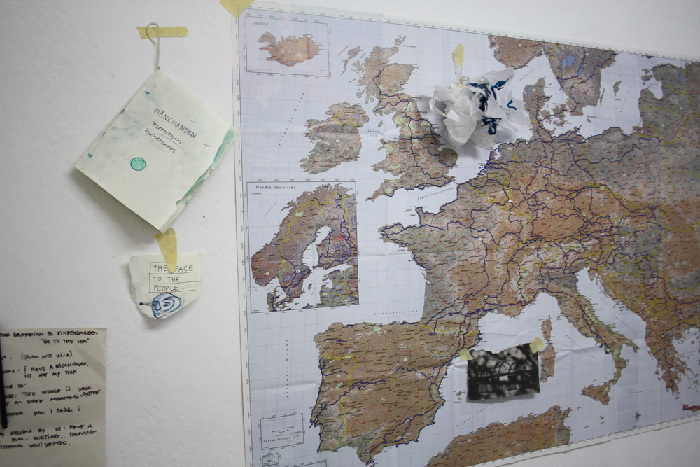 Marvin Mann and Marcel Moon met 4-10 am Wedensday, to discuss and visualize their future travels. They will travel in the shadow of the mysterious character “Double Blanc” a friend, a nun that reciently passed away. Mann and Moon met her years ago in France and decided after her death to write a book about her, and seek out the places and people she talked about. Their travel starts in Ireland the 5th of March and will involve England, Spain and France. www.flickr.com/mannandmoon